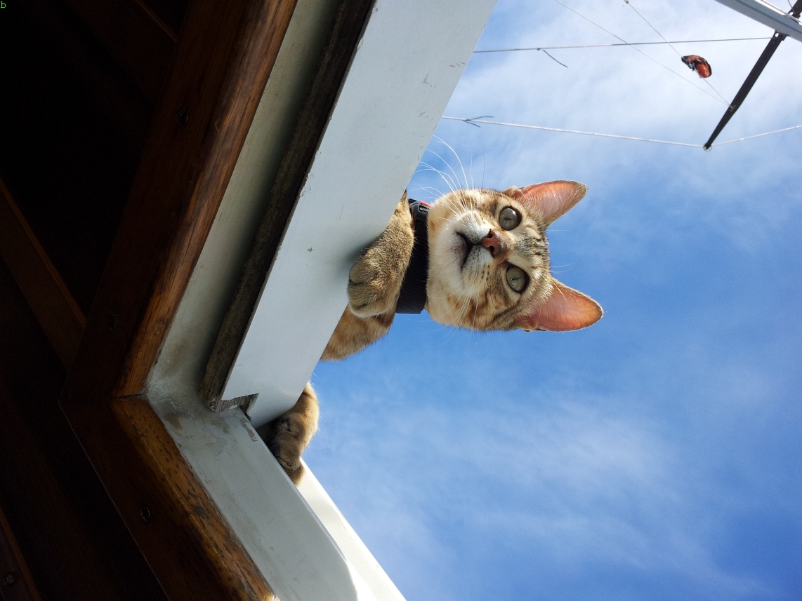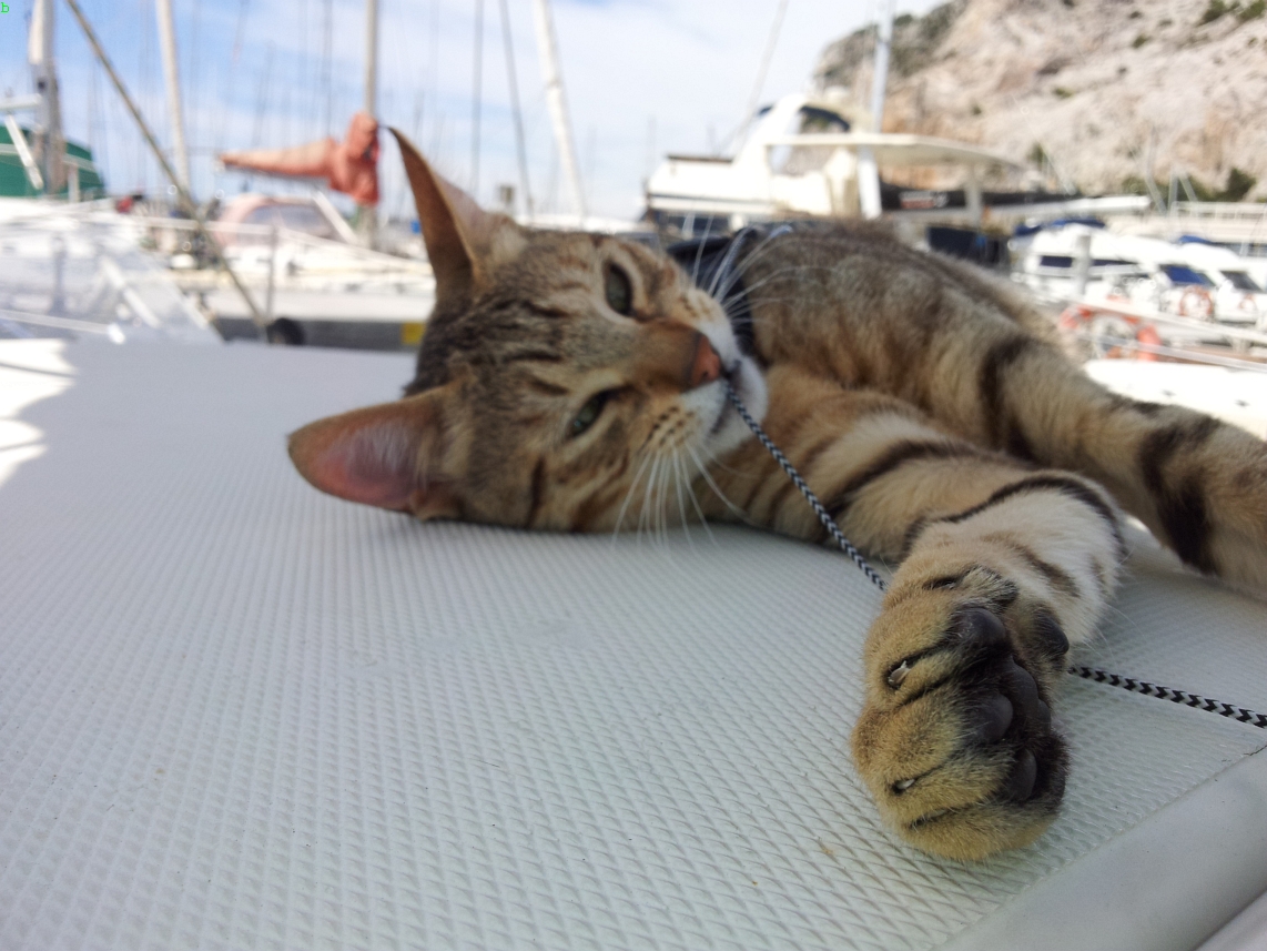 En el mar, su estómago sigue revolviéndose contra la decisión de que sea una gata marinera. Dadme tiempo…